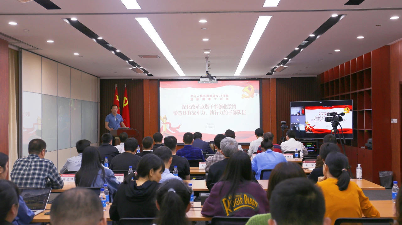 在新中国成立71周年之际,9月29日,国新健康副书记、总裁李永华以题为《深化改革点燃干事创业激情,持续锻造富有战斗力、执行力的干部队伍》,讲授了一场热情洋溢、鼓舞人心的党课。