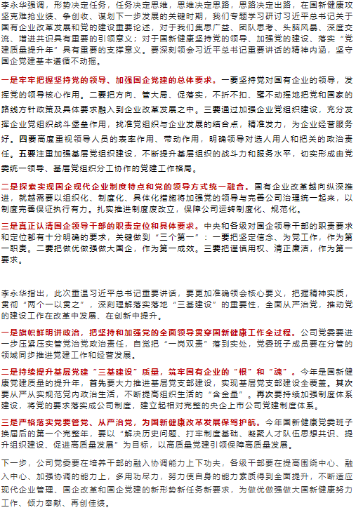 国新健康召开2021年第四次党委理论学习中心组集体学习会议