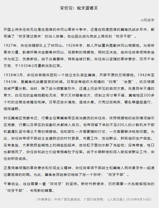 小编按:本期为大家分享的第二十八个党史小故事—宋任穷:咬牙渡难关