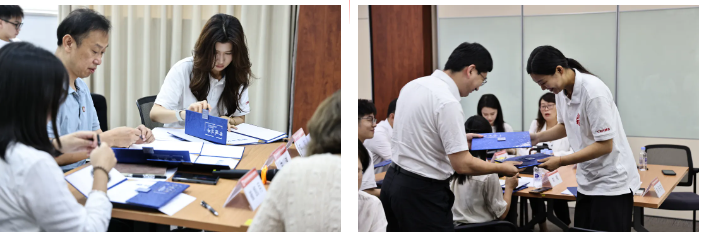 随着2023届管培生完成出师,2024届管培生走上舞台,以动画、视频等多种方式进行自我介绍,展现自己的蓬勃朝气与对未来美好憧憬;他们与导师签署拜师帖,宣读誓词向彼此许下承诺:“执弟子之礼,谨遵师教,成己为人,成人达己”。这一刻,不仅意味着师徒关系的正式确立,更象征着知识与经验的传承与延续。在交流环节中,2024届管培生导师满怀热忱,纷纷敞开心扉,分享了各自职业生涯中的宝贵经验与深刻感悟,表达了坚决做好管培生培养的决心和信心。