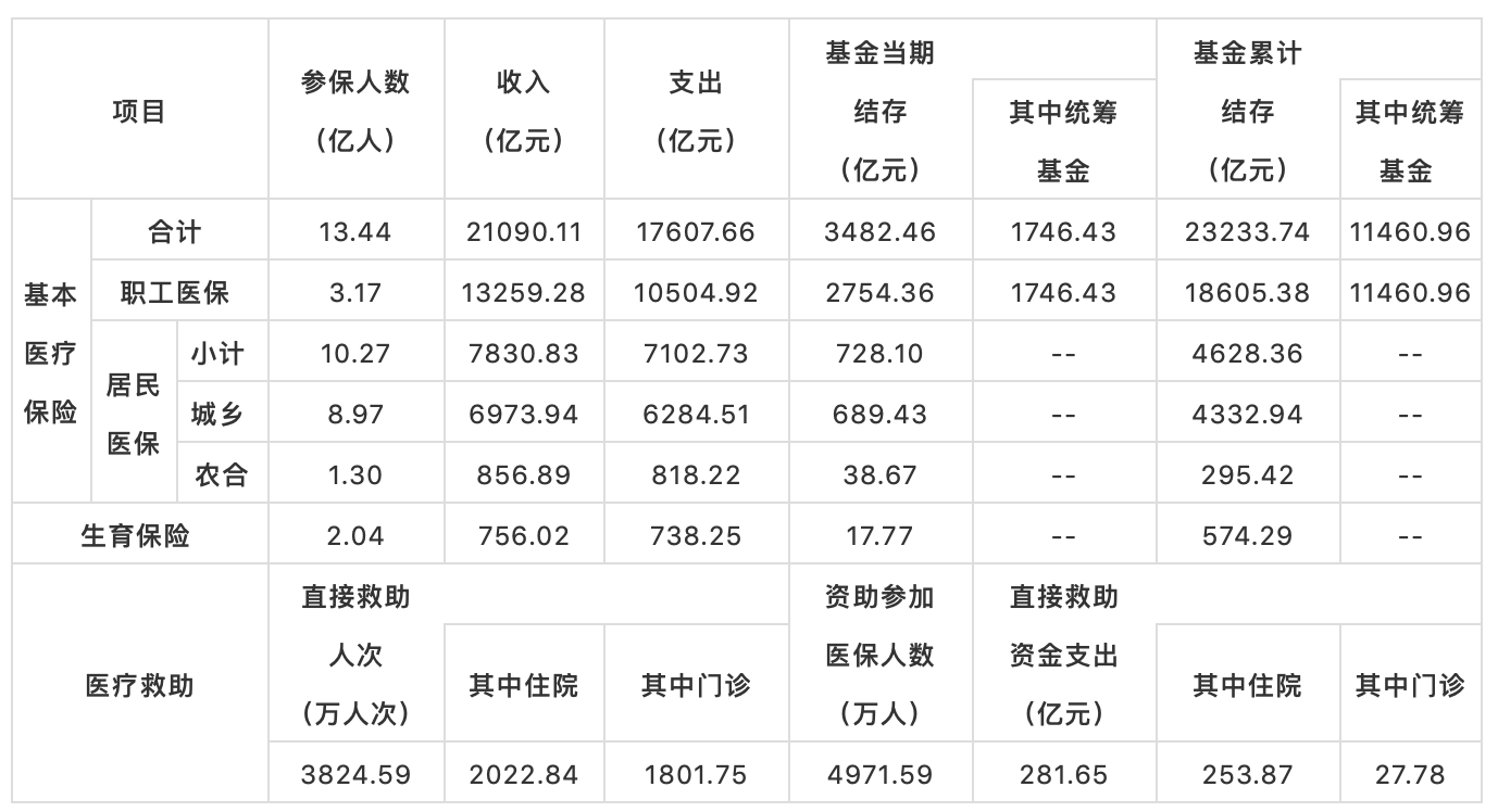 [1]基本医疗保险参保人数包括原由人力资源社会保障部门管理的职工基本医疗保险、城乡居民基本医疗保险和原卫生计生部门管理的新型农村合作医疗。