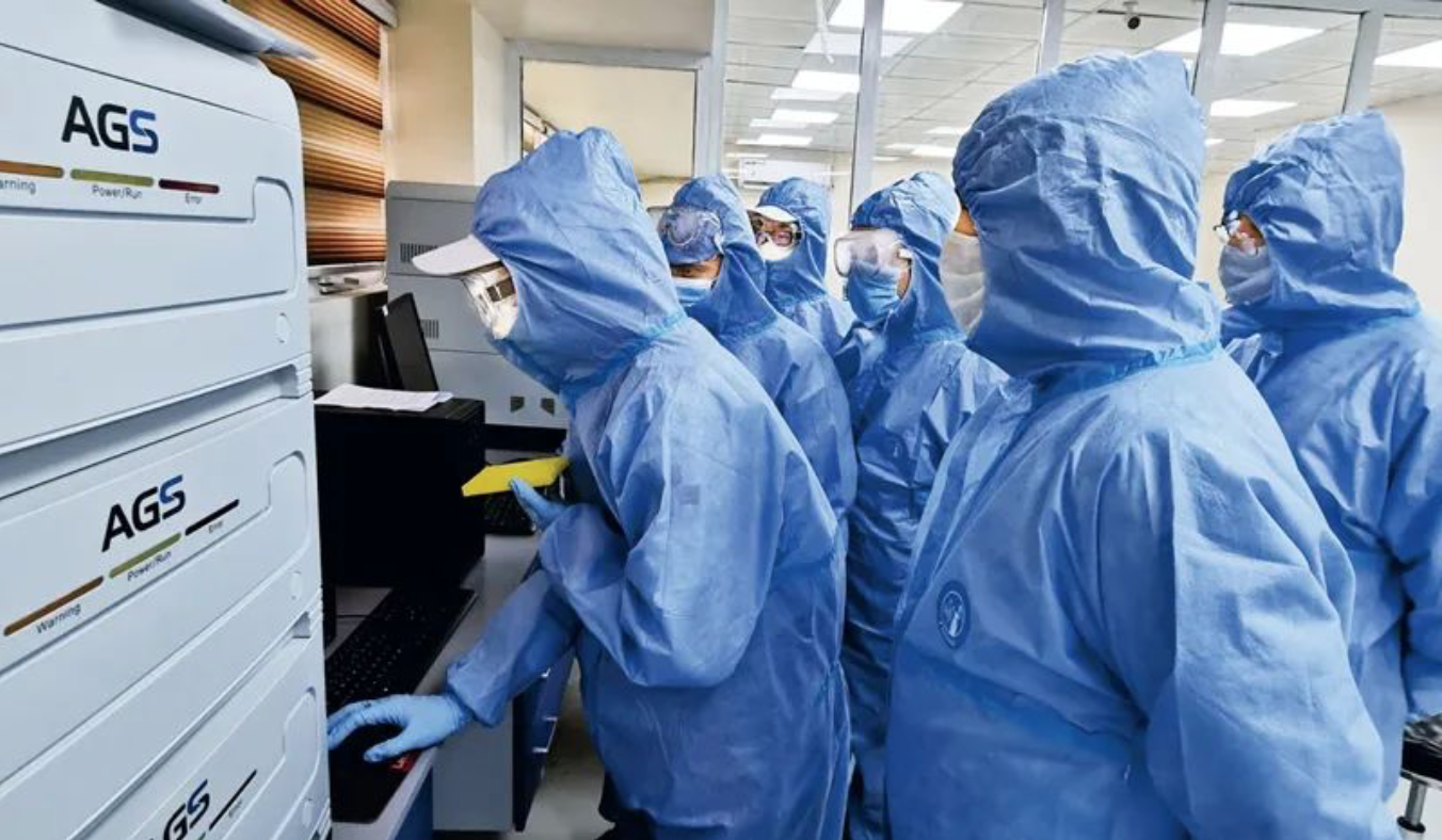 2020年3月18日,在伊拉克巴格达,中国红十字会总会援助伊拉克新冠肺炎防疫专家组成员正在调试核酸检测实验室设备。新华社发