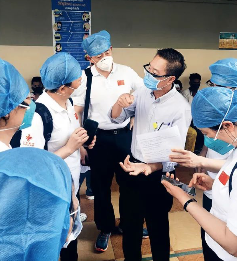 2020年3月24日,在柬埔寨金边,中国援柬抗疫医疗专家组在柬苏友谊医院调研。新华社发 专家组供图