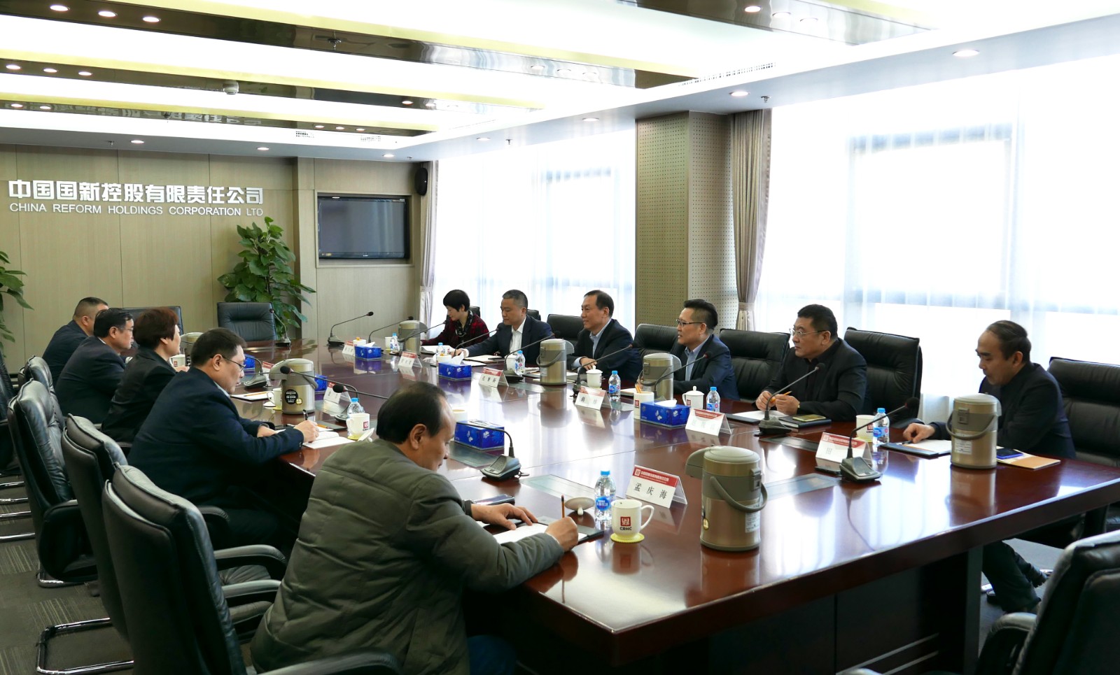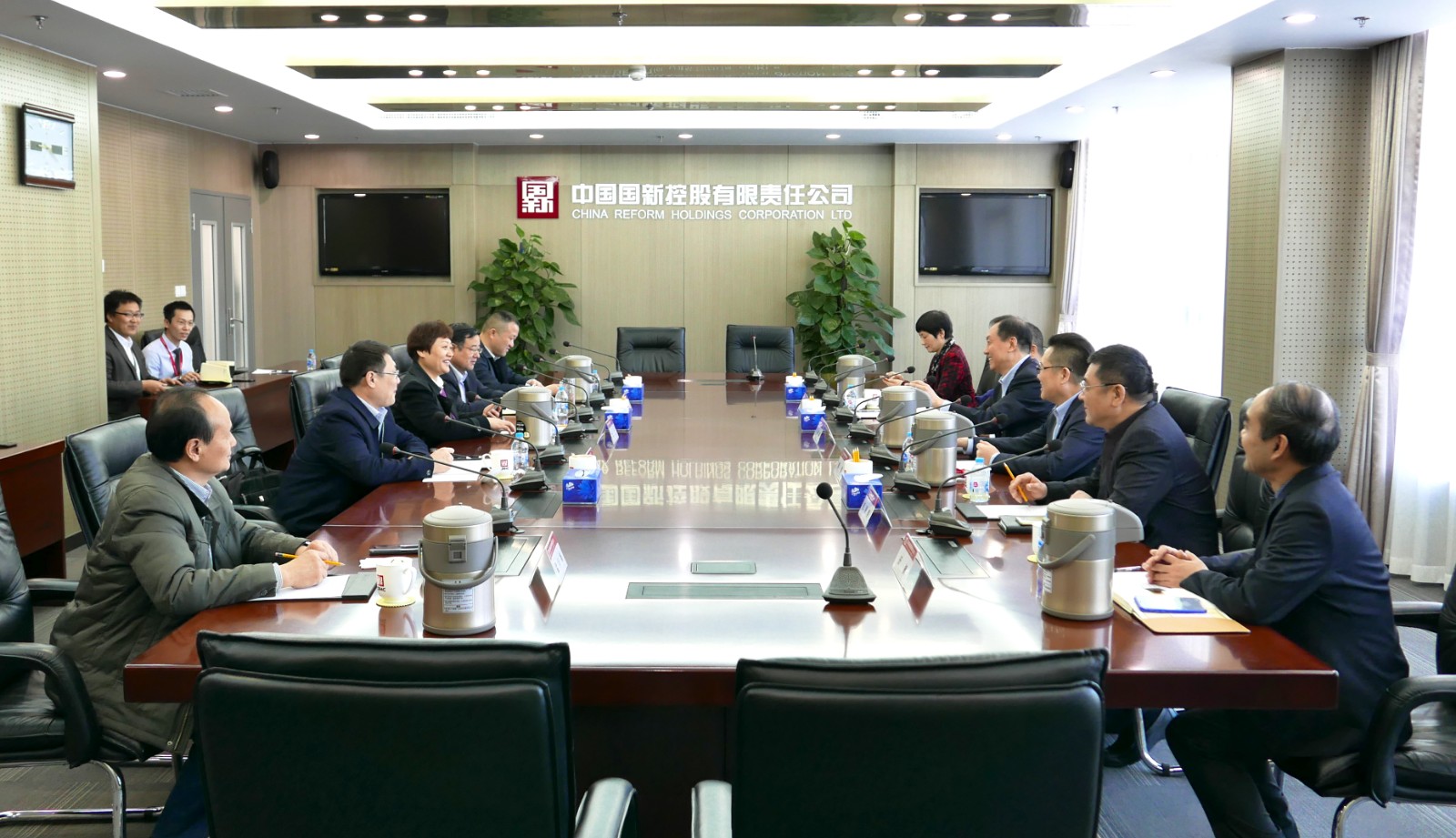 3月14日,滁州市委常委、常务副市长金力一行到访国新健康,中国国新党委委员、副总经理孔繁新,国新健康总裁韩炜会见到访人员。