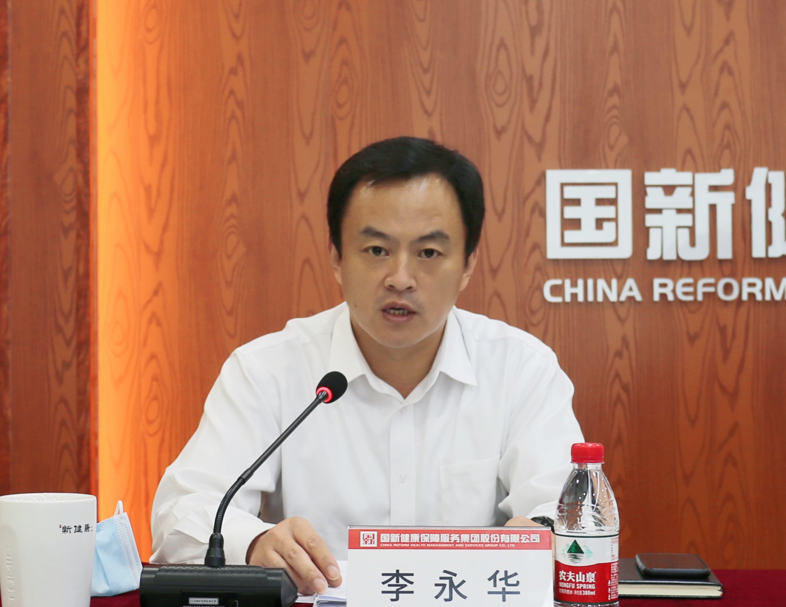 国新健康党委副书记、总裁李永华以《奋力攻坚克难·决战全年目标,以战略落地为导向开启全员奋斗的新征程》为题,作国新健康2020年中工作会报告。