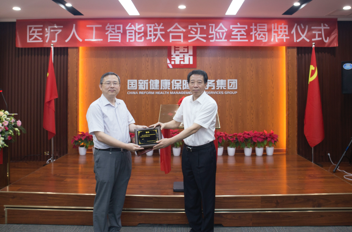 7月1日,国新健康保障服务集团股份有限公司与北京大学软件工程国家工程研究中心医疗人工智能联合实验室揭牌仪式在国新健康北京总部举行。