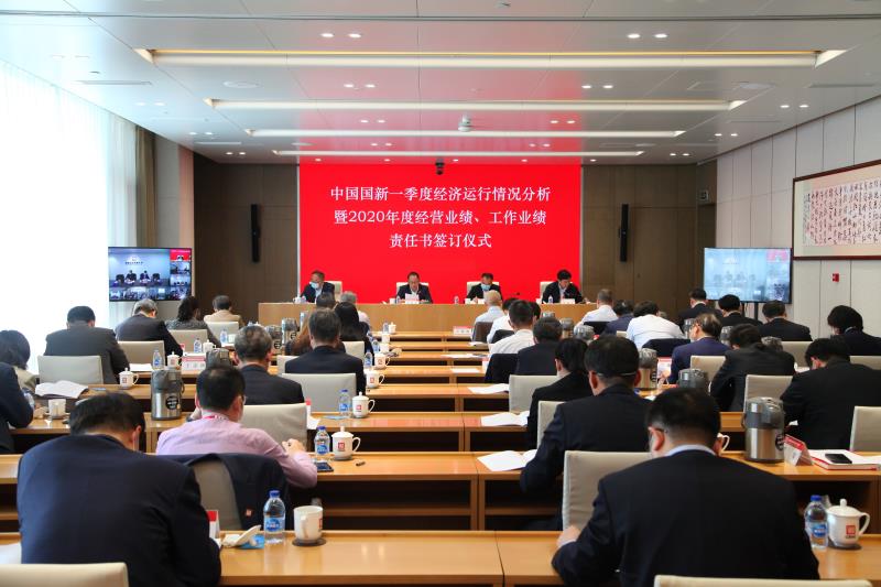 4月20日,中国国新召开一季度经济运行情况分析暨2020年度经营业绩、工作业绩责任书签订仪式视频会议。公司党委书记、董事长周渝波出席会议并讲话强调,要深入学习贯彻习近平总书记关于统筹疫情防控和经济社会发展的系列重要讲话和指示批示精神,增强“四个意识”、坚定“四个自信”、做到“两个维护”,贯彻落实党中央、国务院决策部署,按照中央企业一季度经济运行情况通报暨2020年度经营业绩责任书签订视频会议指示精神,坚持稳中求进工作总基调,落实“六稳”“六保”工作要求,紧紧围绕“三稳四保一加强”,统筹推进疫情常态化防控和企业改革发展工作,聚焦打造国有资本运营升级版,以运营平台、运营模式、运营能力升级为抓手,紧盯全年目标任务不放松,明确任务、研究举措,为实现决胜全面建成小康社会、决战脱贫攻坚目标作出更大贡献。公司党委副书记、总经理莫德旺与所出资企业负责人签订2020年度经营业绩责任书。党委委员、总会计师刘学诗主持会议,党委委员、副总经理黄耀文传达了国资委关于中央企业一季度经济运行情况通报暨2020年度经营业绩责任书签订视频会议指示精神,公司党委委员、纪委书记王黎晓,党委委员、副总经理王豹、房小兵出席会议。