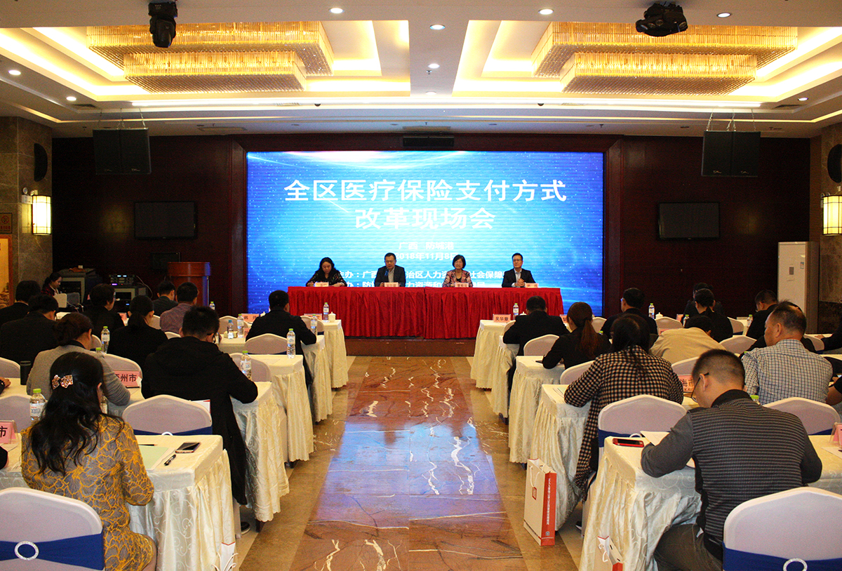 为全面贯彻党的十九大精神,以习近平新时代中国特色社会主义思想为指导,贯彻落实国家卫生体制改革的精神,加快推进广西医保支付方式改革工作,充分发挥医保支付在规范医疗服务行为、控制医疗费用不合理增长的作用,推行全区 DRGs 付费的工作,切实减轻群众医疗费用负担,11月8日,全区医疗保险支付方式改革现场会在防城港市召开。