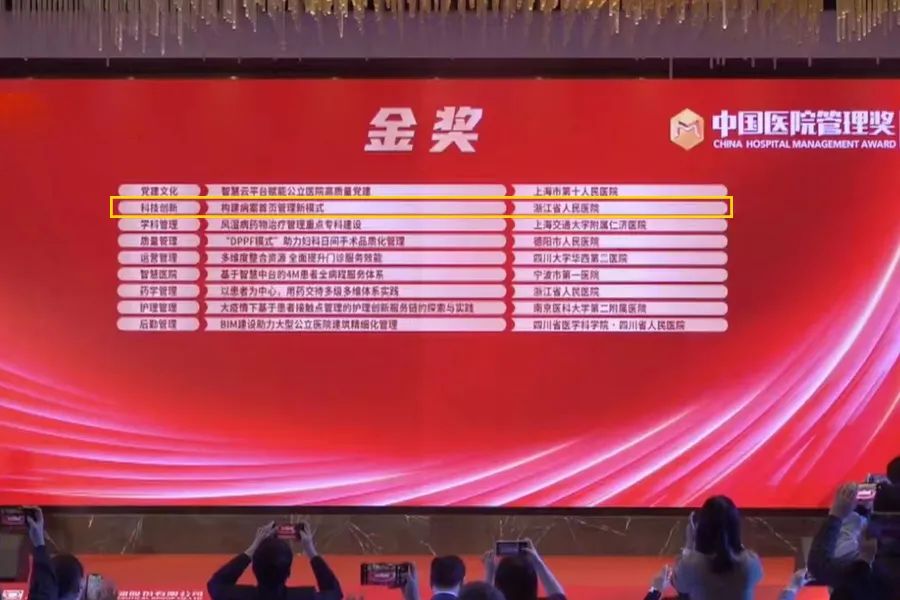 2022年11月27日上午,第六季中国医院管理奖荣誉盛典传来佳绩:国新健康服务的浙江省人民医院病案首页智能管理项目以科技创新类第一名斩获金奖,金华市中心医院门诊APG智能管理项目以质量管理类第三名荣获银奖。