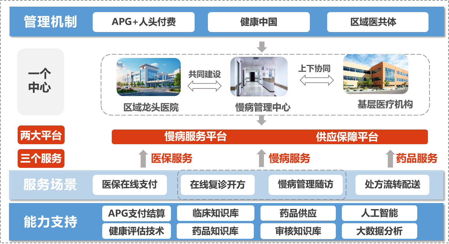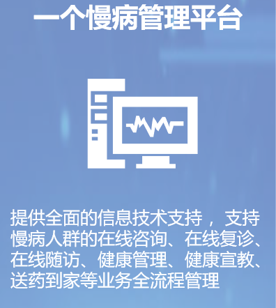 贯彻“大卫生、大健康”理念,打造“就医全流程、服务一体化”的慢病管理中心,承载辖区内慢病患者的就医购药、随访管理、健康宣教等全流程的服务,通过数字化手段赋能医疗机构,提升服务效率和老百姓满意度与获得感。