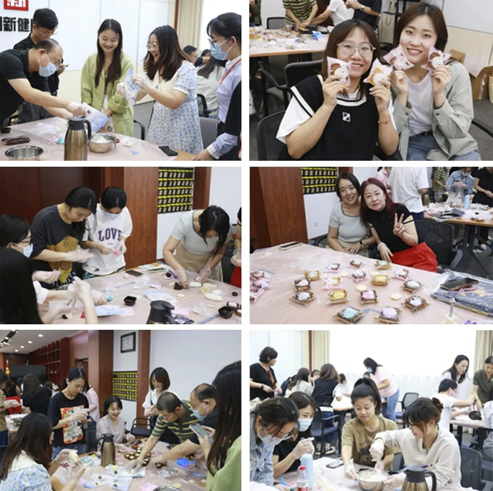 冰皮月饼制作环节,通过分组动手创作拉进职工与职工间的距离和情感,寓教于乐,增强集体观念和团队合作意识,营造喜庆的节日气氛与和谐的工作氛围。