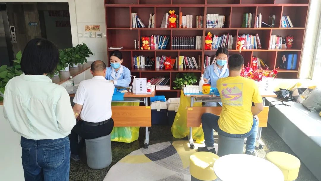 在检测服务中,公司联合专家团队为职工进行讲解说明,解决被测者的顾虑和困惑。全体人员参与意愿高,现场问询、抽血等环节均有序进行。目前总部已完成首轮检测工作,地方各BU的检测也在持续进行中。检测报告将于7个工作日后,在“职工益康”小程序进行查看。
