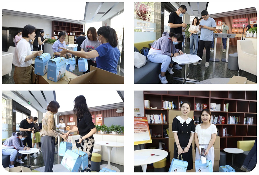 工会同事在发放“大礼包”的同时也不忘叮嘱职工们注意防暑降温,保障人身安全。