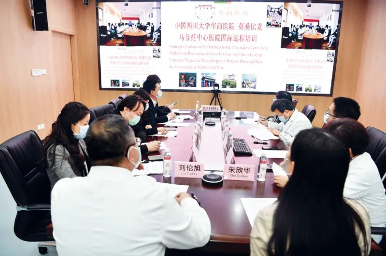 2020年4月3日,四川大学华西医院为莫桑比克马普托中心医院进行新冠肺炎疫情防控国际远程培训。中新社记者 张浪/摄