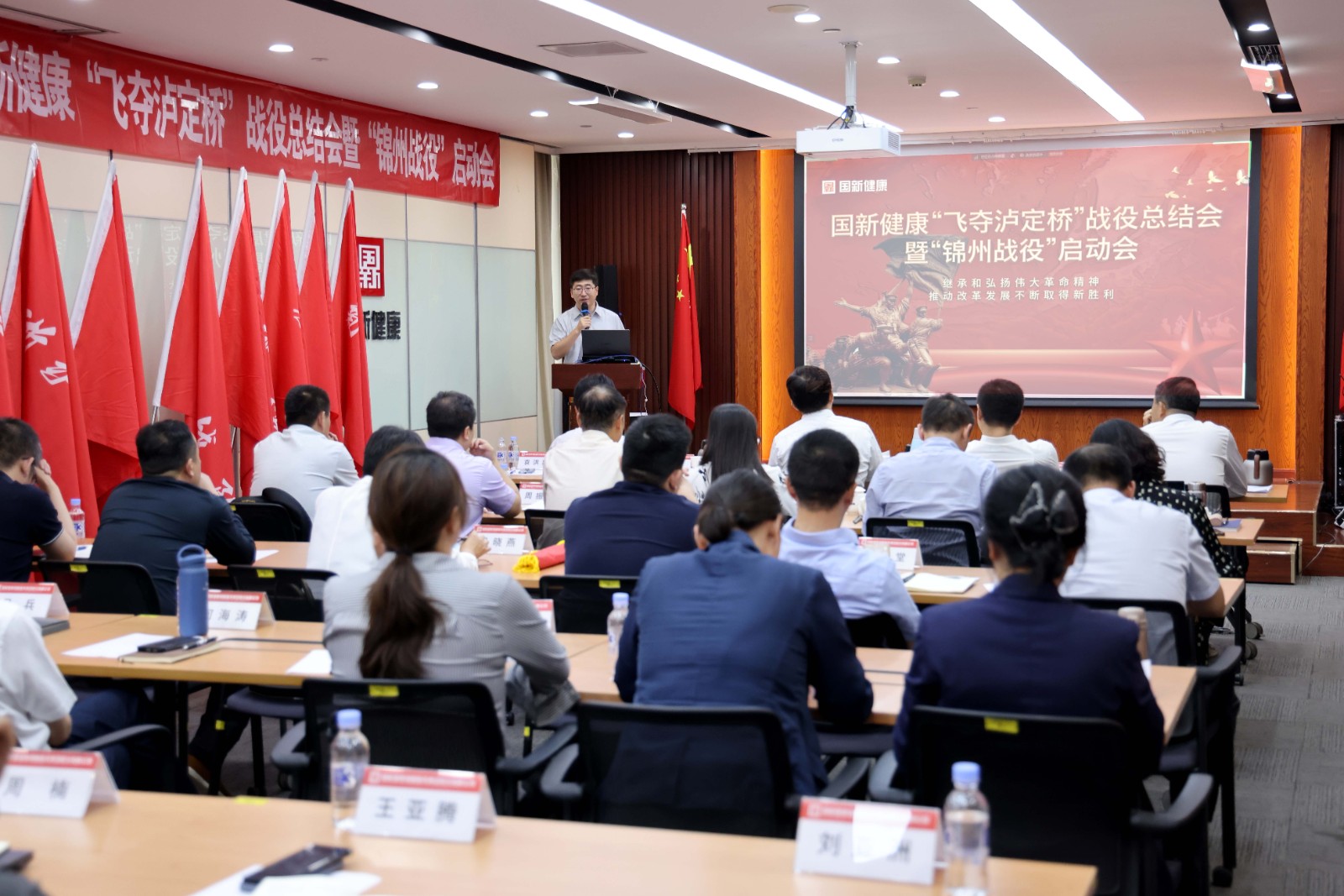7月9日,国新健康召开“飞夺泸定桥”战役总结会暨“锦州战役”启动会。会议总结回顾了“飞夺泸定桥”战役取得的战绩和不足,对战役过程中战功卓越的优秀个人和团队进行表彰,正式宣布启动“锦州战役”。国新健康党委书记、董事长李永华出席会议并作动员讲话,国新健康党委副书记、总经理袁洪泉主持会议,中国国新党群工作部部长周鑫参加会议并讲话,中国国新运营管理部处长冯蓉、国新健康领导班子其他成员出席会议。